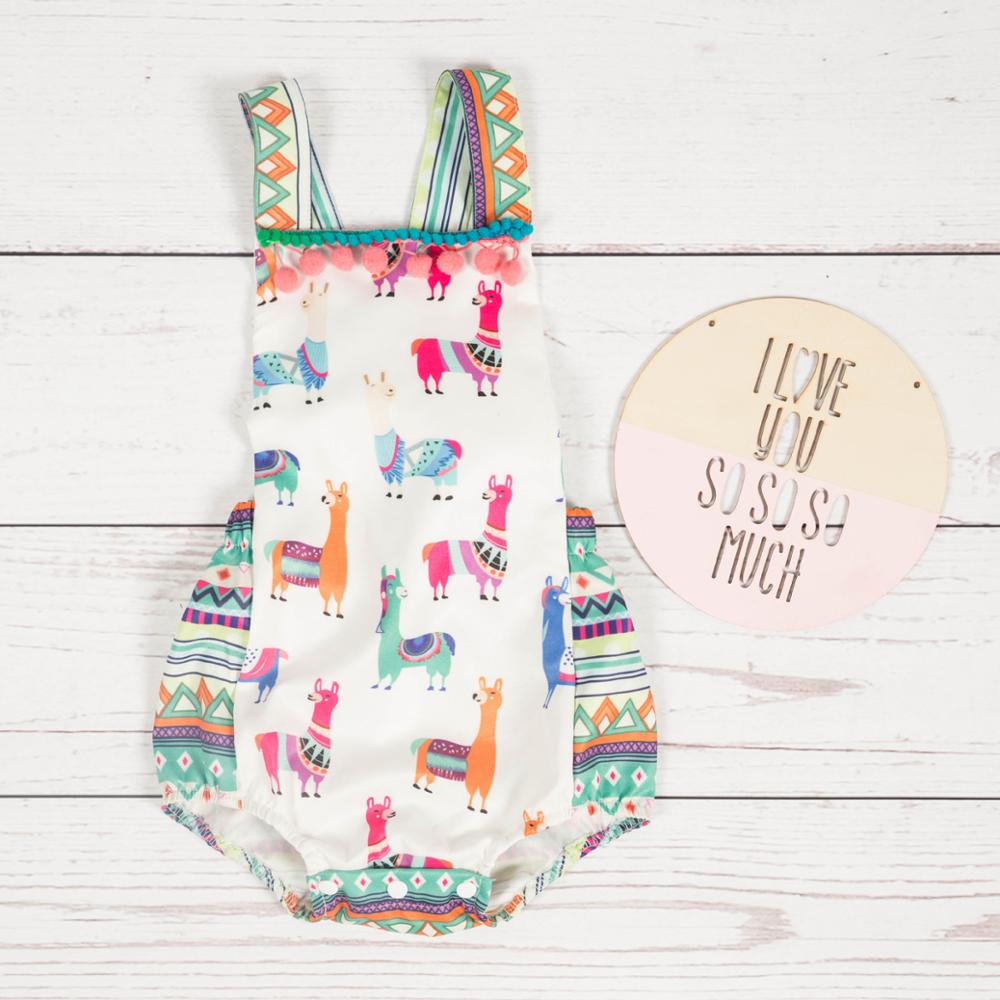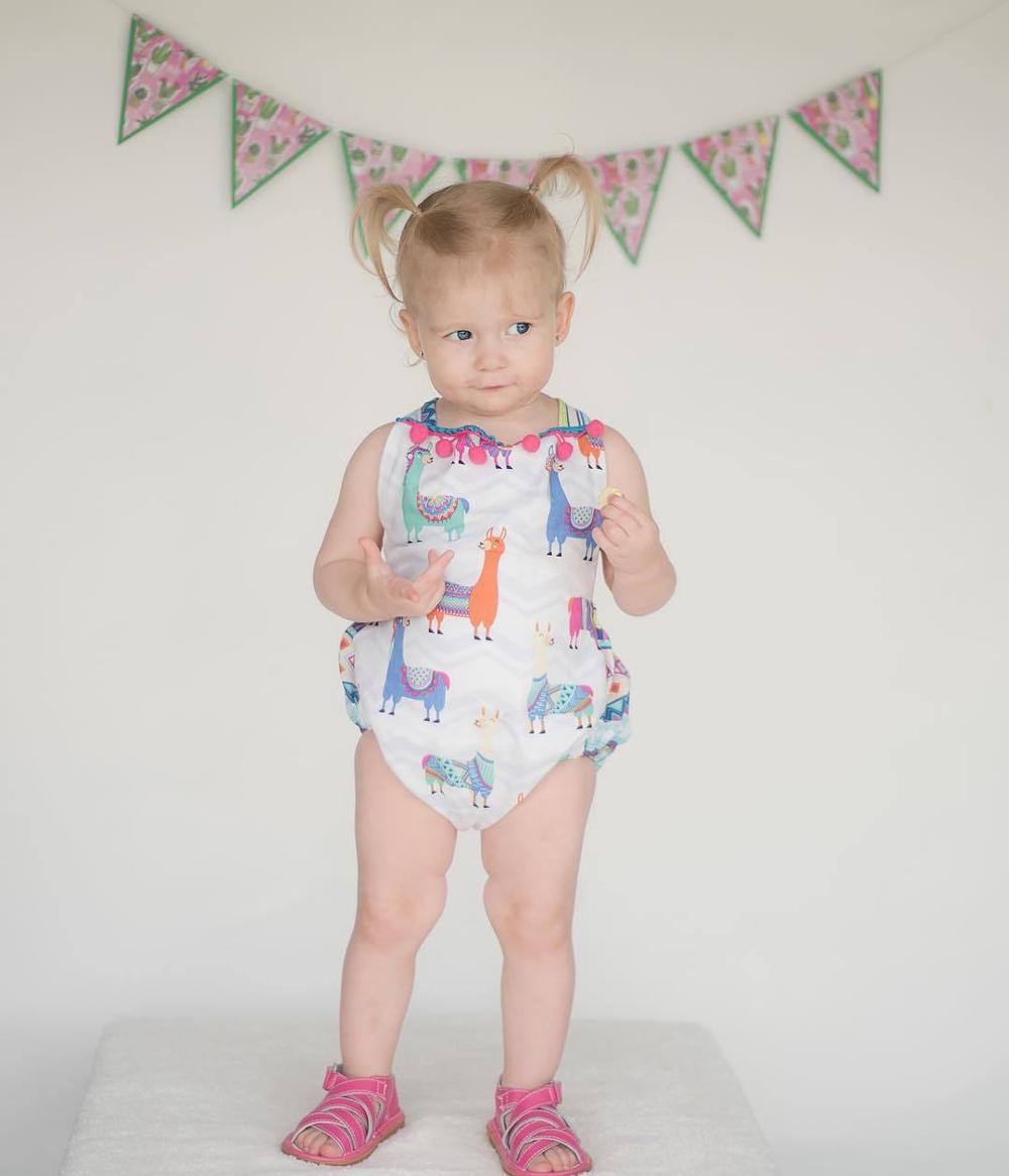 Honestly, what needs to be said about this? If you have a girl and she fits in these sizes, just buy it. The top is double-lined so the white isn't see-through, the legs are a comfy elastic, there are snaps for diaper changes, and the back has a long tie that criss-crosses then finishes in a bow above their cute little bottom! Honestly, I don't know how I found this but if I could find ten more styles like it, I would buy them all!