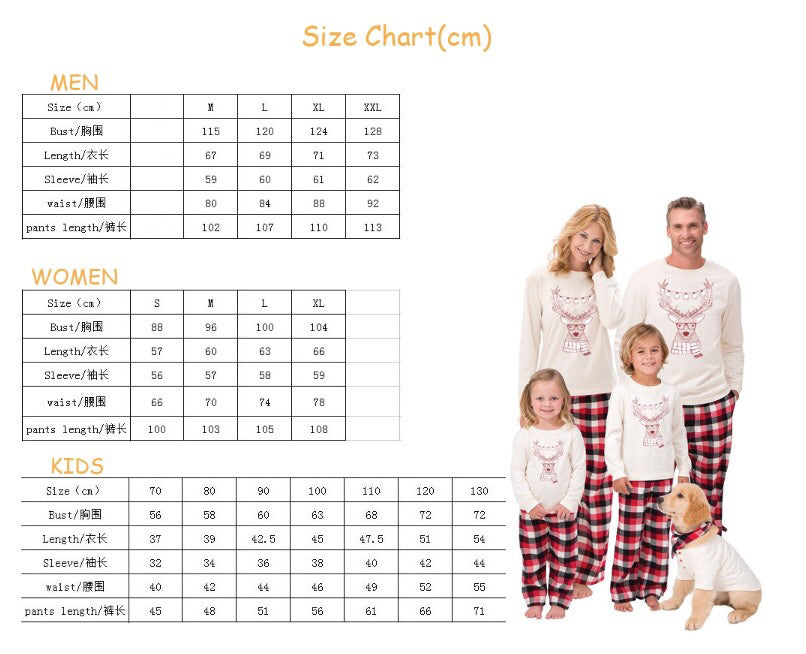 These cute as a button deer pajamas are a comfy, fun way to celebrate! They are a cotton blend. Please use the size charts to correctly preorder. No extra inventory will be available. These will arrive approximately November 25th. Dog outfit not available, sadly. :(