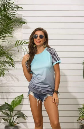 POP! Stock- Ombre Striped Sleeve Tee